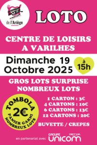 Grand loto au centre de loisirs de Varilhes Dimanche 19 Octobre 15h
